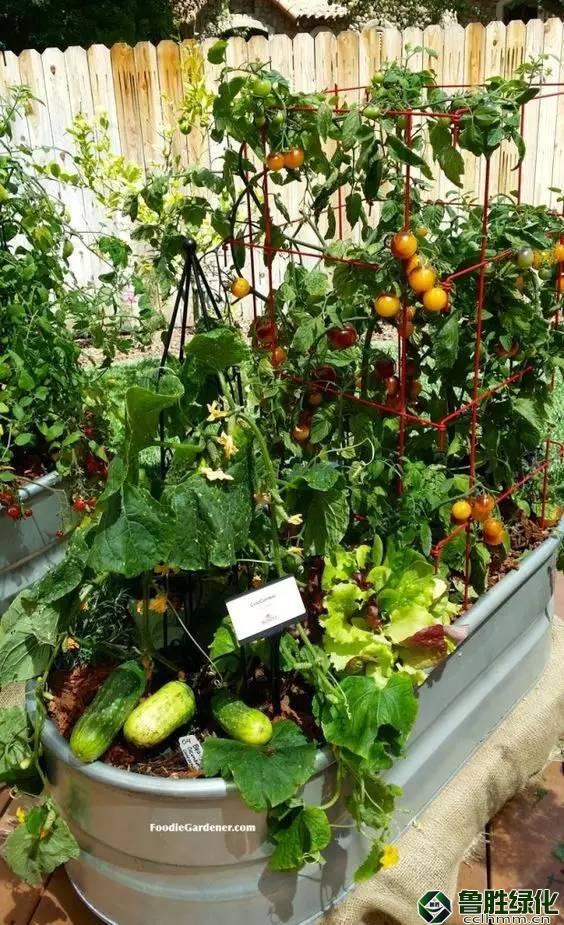 不想空间太开放的话就用木板做容器,等蔬果长大后,俨然都是一副怡人的田园画。