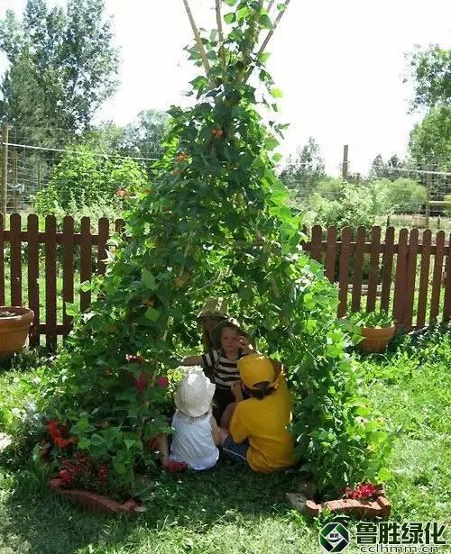 藤蔓蔬菜留给孩子,让他们做儿童乐园,一片绿荫,一派丰收。